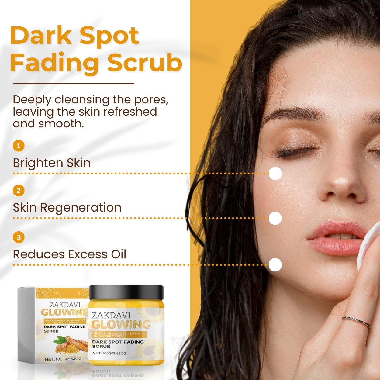 2.Turmeric dark spot fading scrub After cleansing your skin,exfoliate using our glow scrub