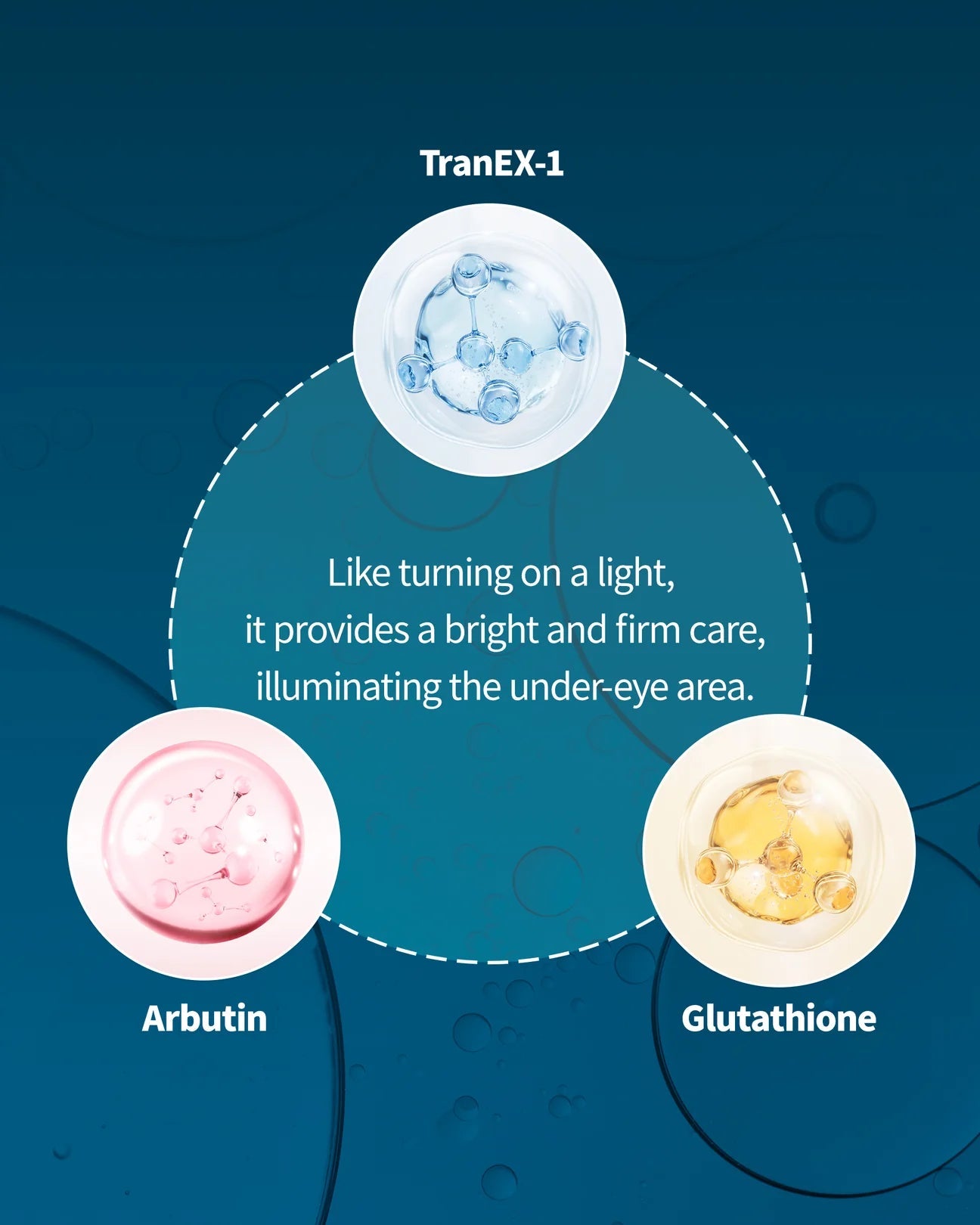 Combat the shadows beneath your eyes with our potent mix of TranEX-1, Arbutin, and Glutathione. This trio of brightening agents works in harmony to lighten dark circles and illuminate the under-eye area.